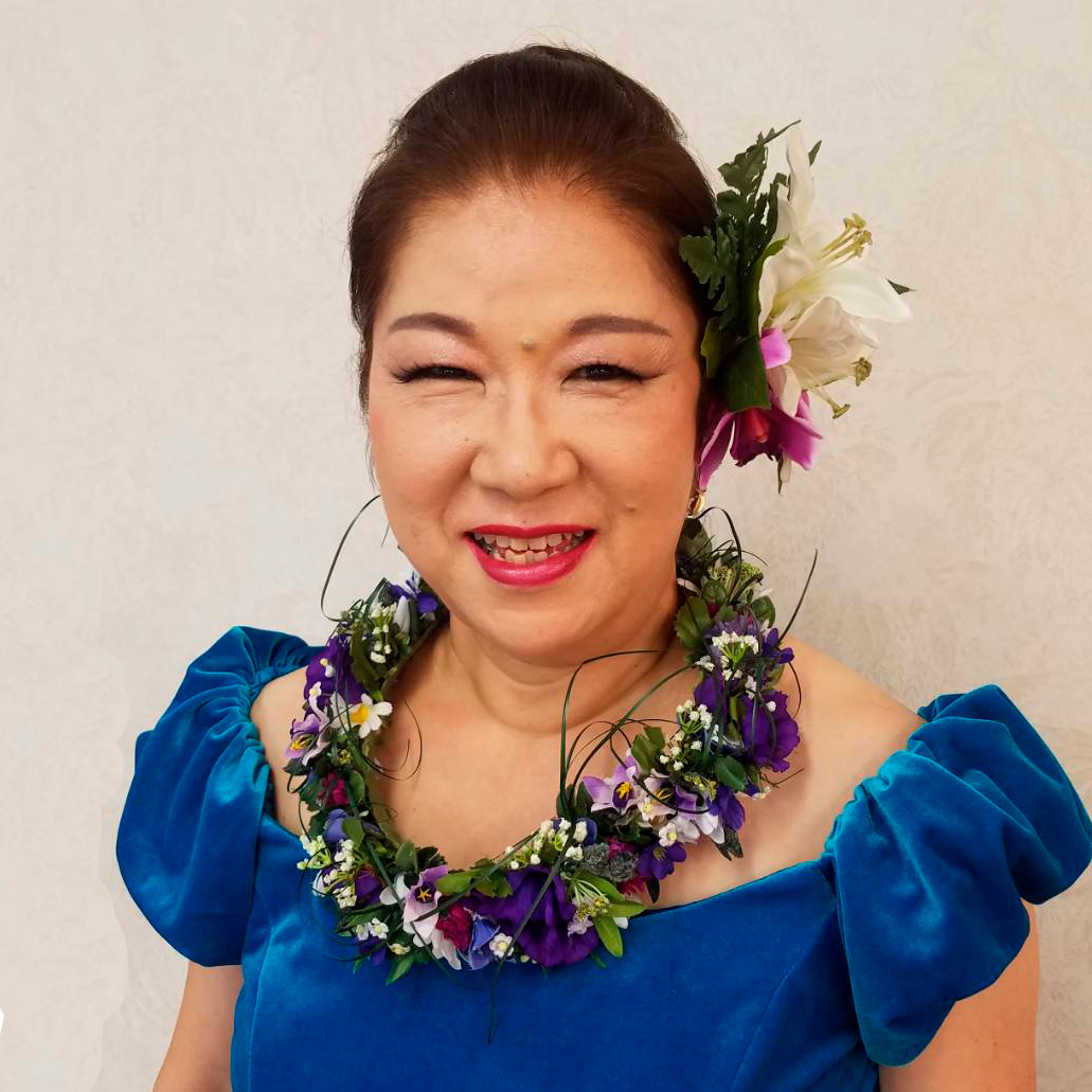 今から20年以上前だったと思いますが、家族のなかで最初にフラを始めたのは私の祖母。80歳を超えてなお現役で踊っています。そんな祖母の影響もあって母もフラダンスを始めたわけですが、当時まだ学生だった私は「フラなんておばあちゃんが踊るもの」と考えていて(苦笑)。高校・短大ではチアリーディングに励み、卒業すると社会に出て、ごく普通に結婚をしました。それから出産を経験して、子供が幼稚園に入ってしまうと、少しずつ自分の時間が持てるようになったんですよね。母が楽しそうに踊る姿を見るうちに、私もトニー・タウヴェラ氏に師事。現在も月に2回のペースで先生のレッスンに通っているんですよ。生徒さんたちを指導する立場ではありますが、私自身もまだまだ学ぶべきことが多いと感じますね。今後もさまざまな経験を重ねて、より魅力的な表現を目指して行きたいと思っています。
